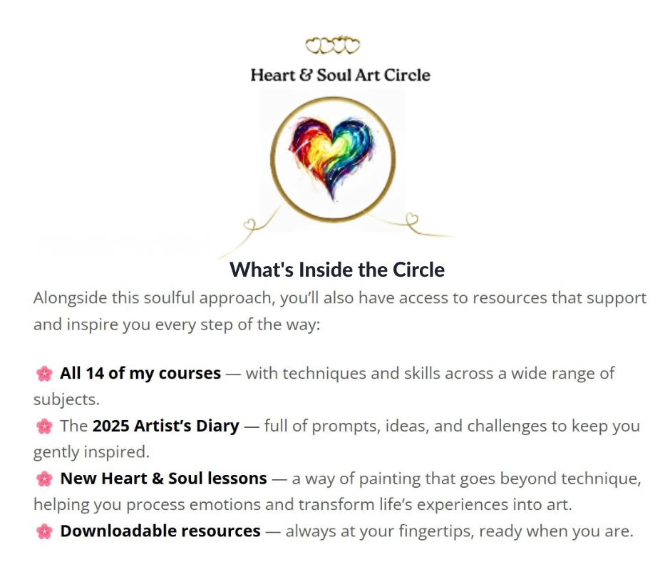 The Heart & Soul Art Academy is a calm, nourishing space for artists seeking depth, connection, and a more meaningful creative practice.